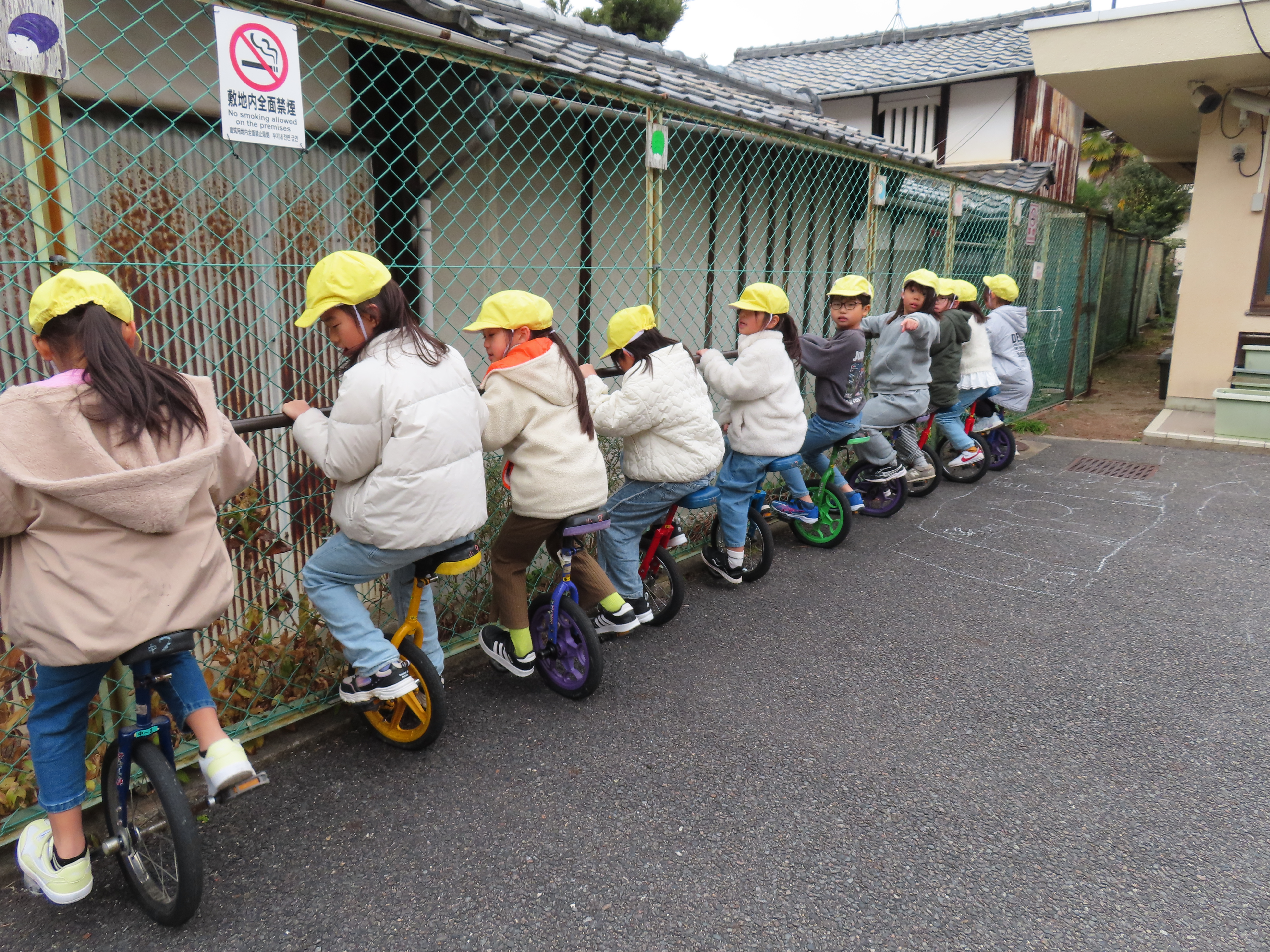 2年生以上は手すりを持ってスムーズに移動できるようになりました。3年生以上のお友だちははそろそろ一人で乗れるようになりたくて、手すりをはなれる練習にチャレンジしています。