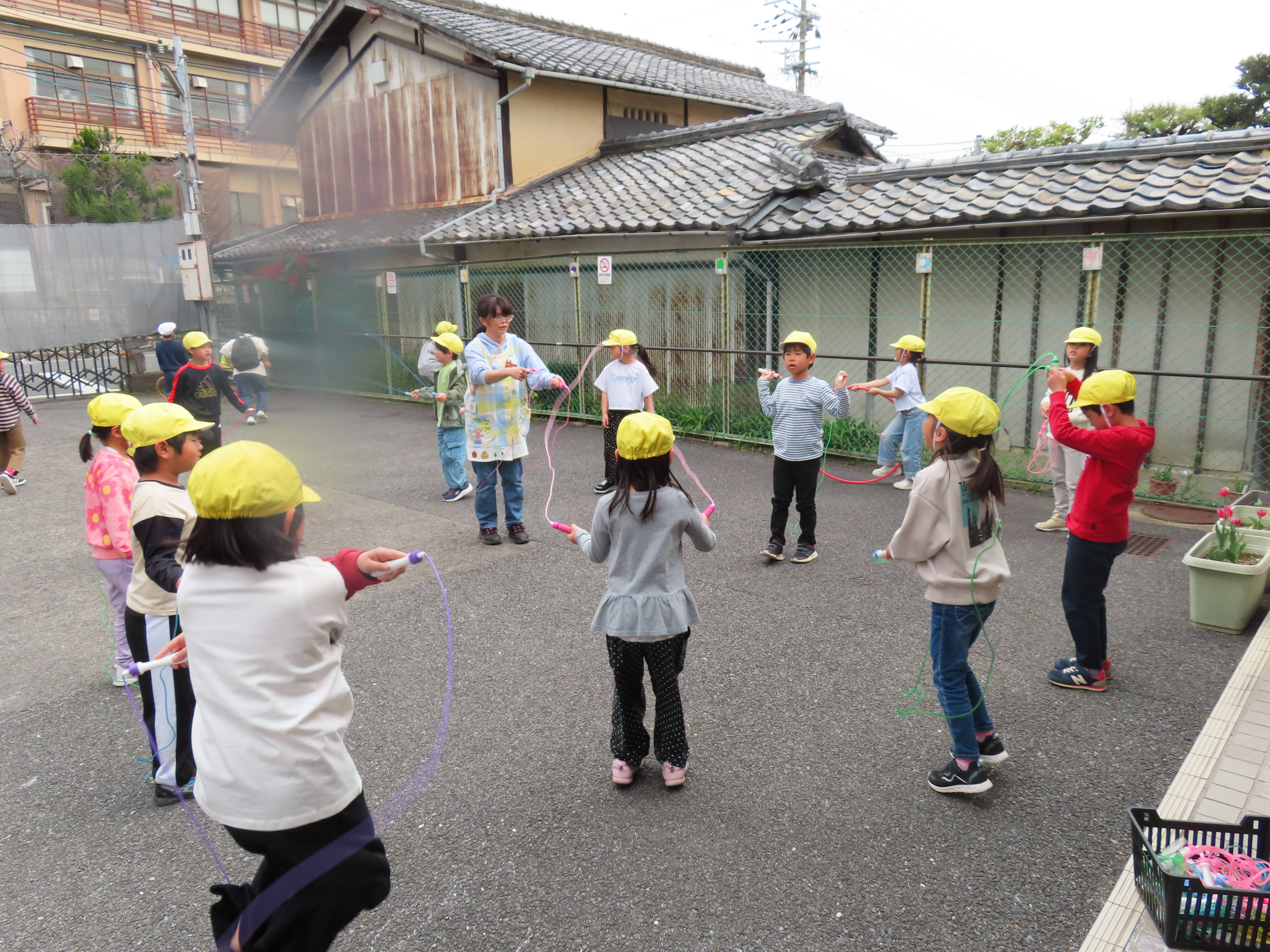 前跳び・後ろ跳び・交差跳びなど色々な跳び方や大繩跳びにチャレンジ!!